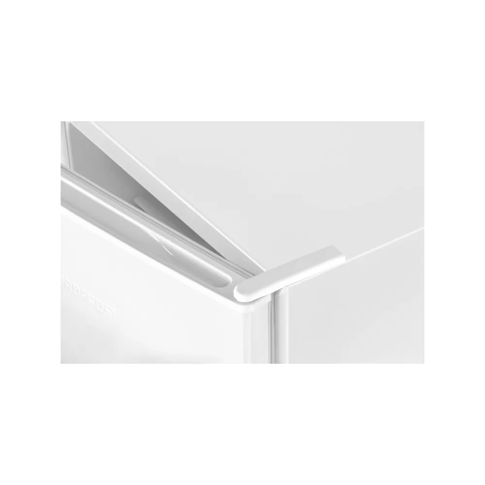 Корпус холодильника в белом цвете выглядит стильно и привлекательно, а горизонтальные интегрированные ручки создают комфорт пользования моделью.