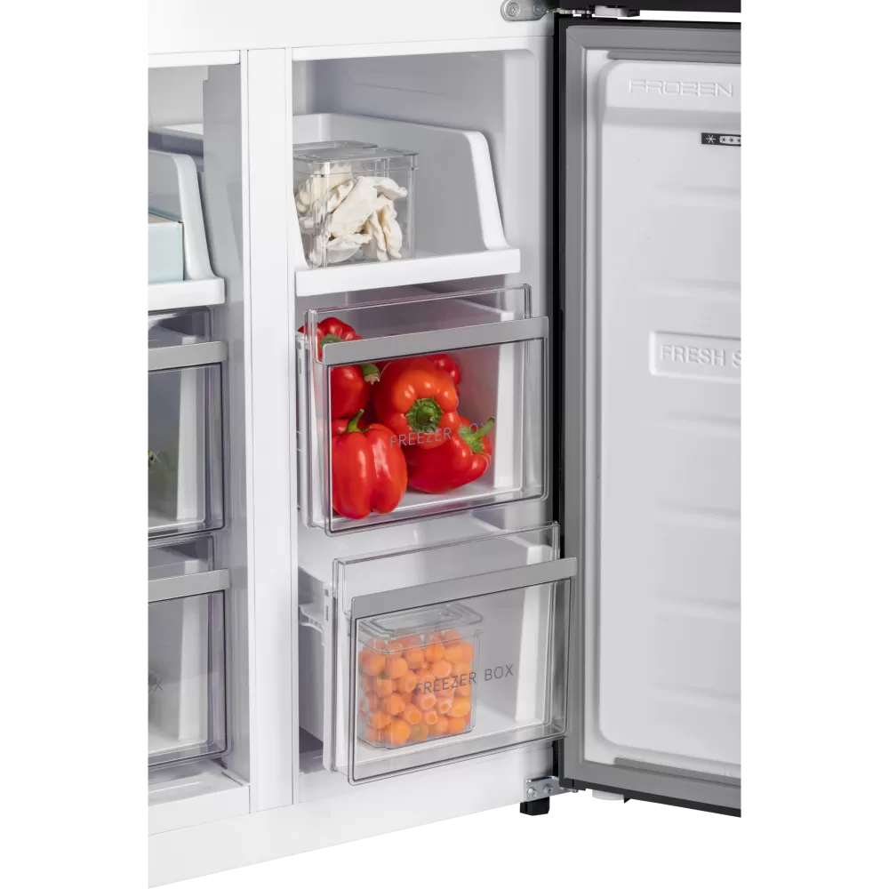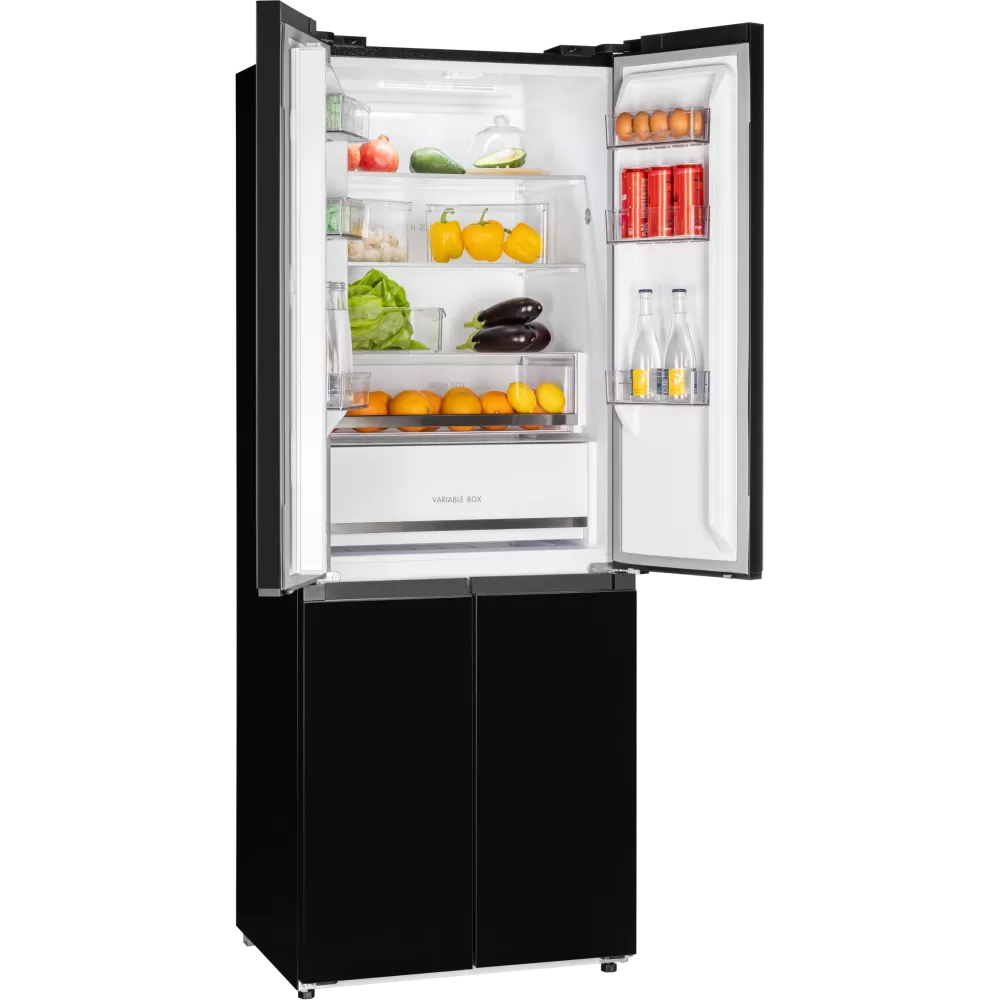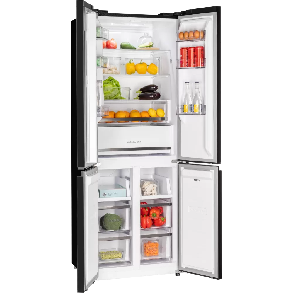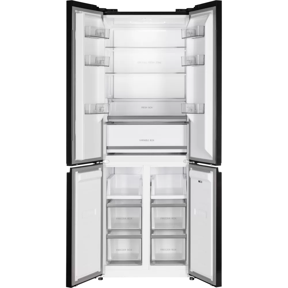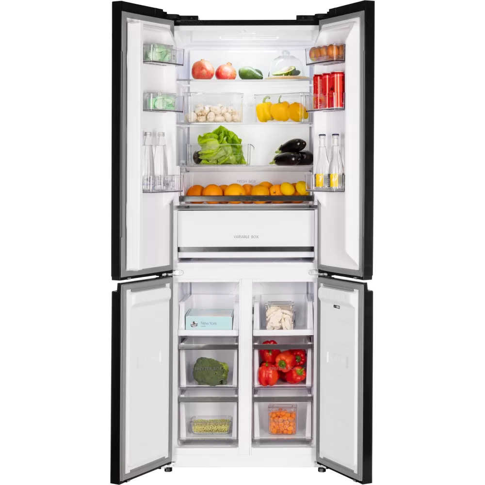 Четырехдверный холодильник NORDFROST RFQ 440 NFGB с инверторным компрессором, автоматической системой охлаждения No Frost и электронным управлением — отличное решение для большой семьи. Модель сочетает в себе утонченный дизайн и функциональность. Прибор, выполненный в стильном черном цвете, имеет высоту 192 см и ширину 703 мм. Общий объем 417 литров дает возможность хранить большое количество продуктов.