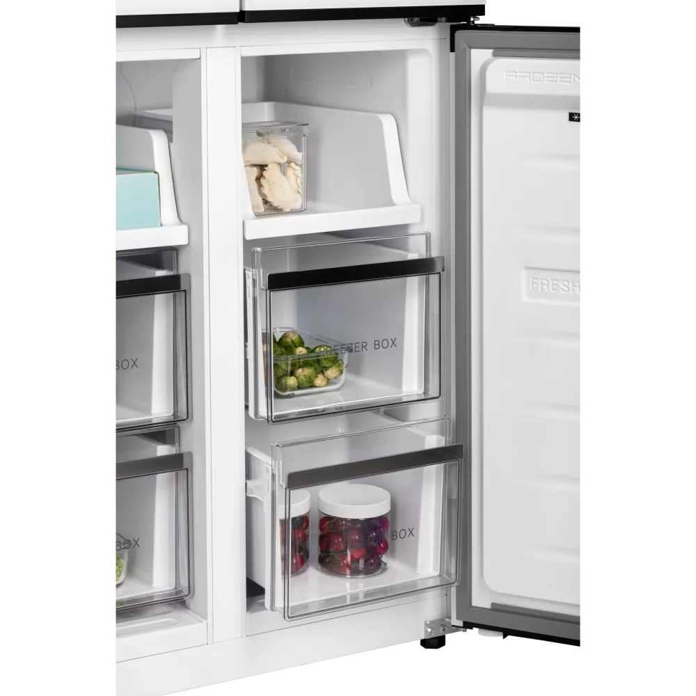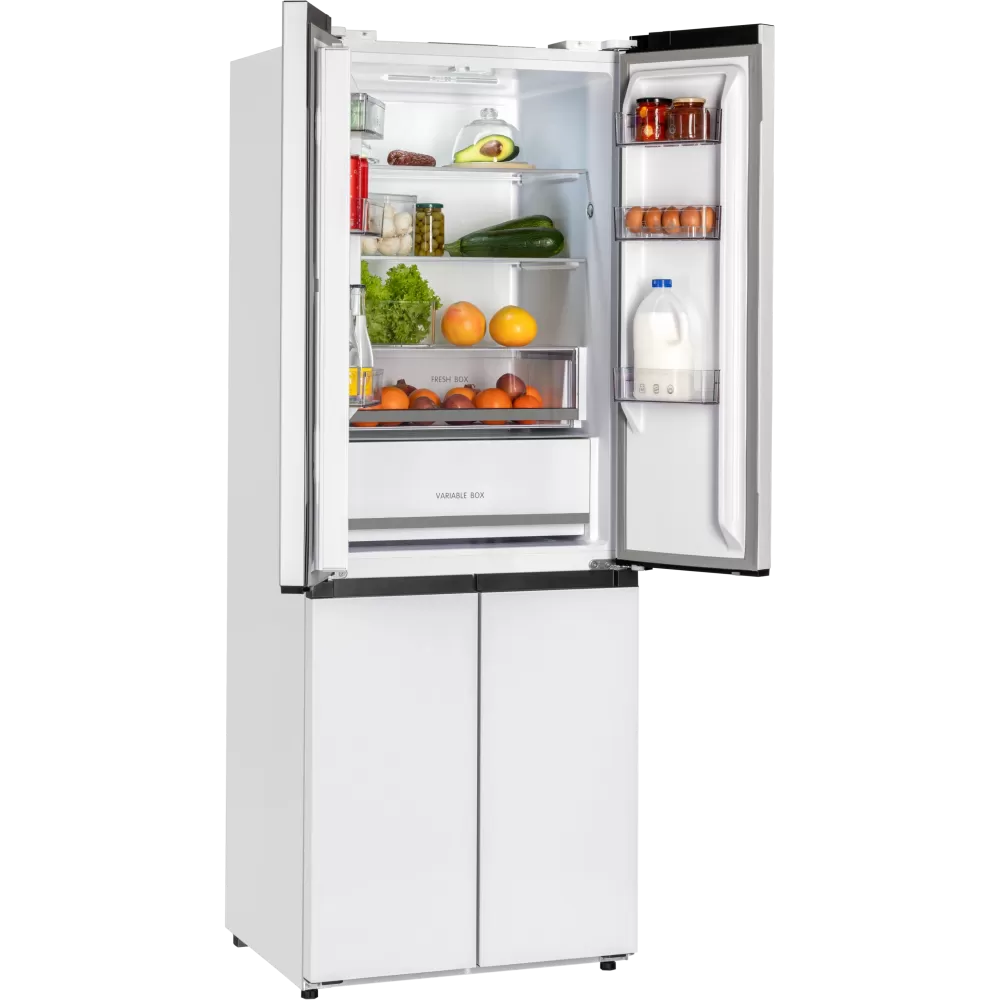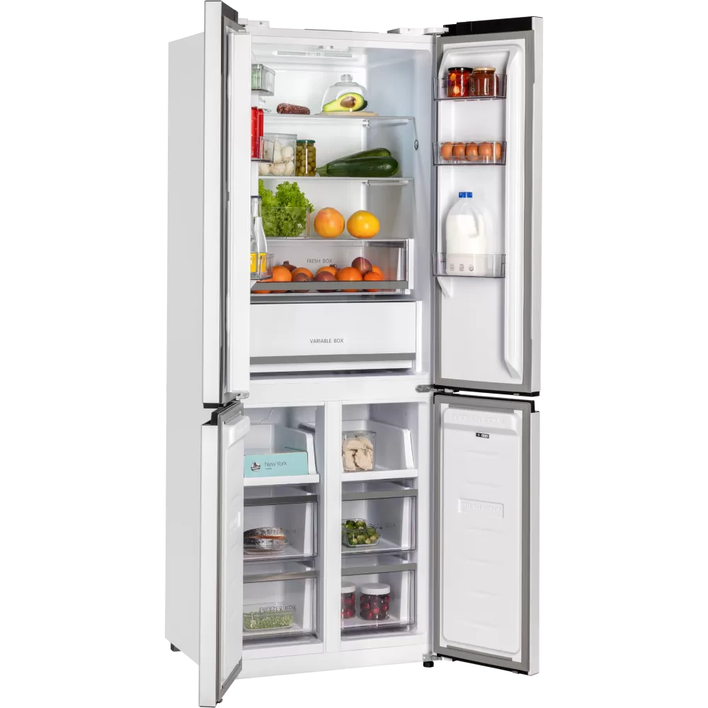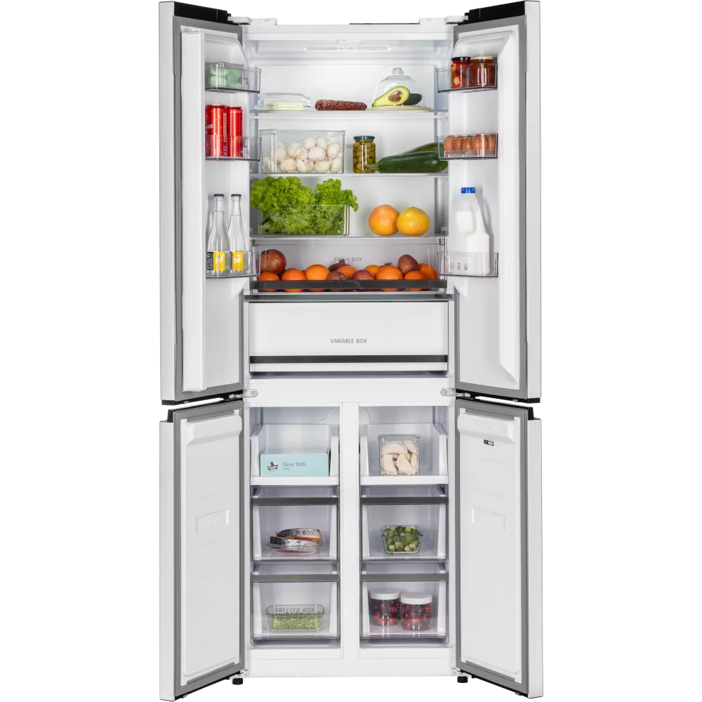 Четырехдверный холодильник NORDFROST RFQ 440NFGW с инверторным компрессором, автоматической системой охлаждения No Frost и электронным управлением — отличное решение для большой семьи. Модель сочетает в себе утонченный дизайн и функциональность. Прибор, выполненный в стильном белом цвете, имеет высоту 192 см и ширину 703 мм. Общий объем 417 литров дает возможность хранить большое количество продуктов.