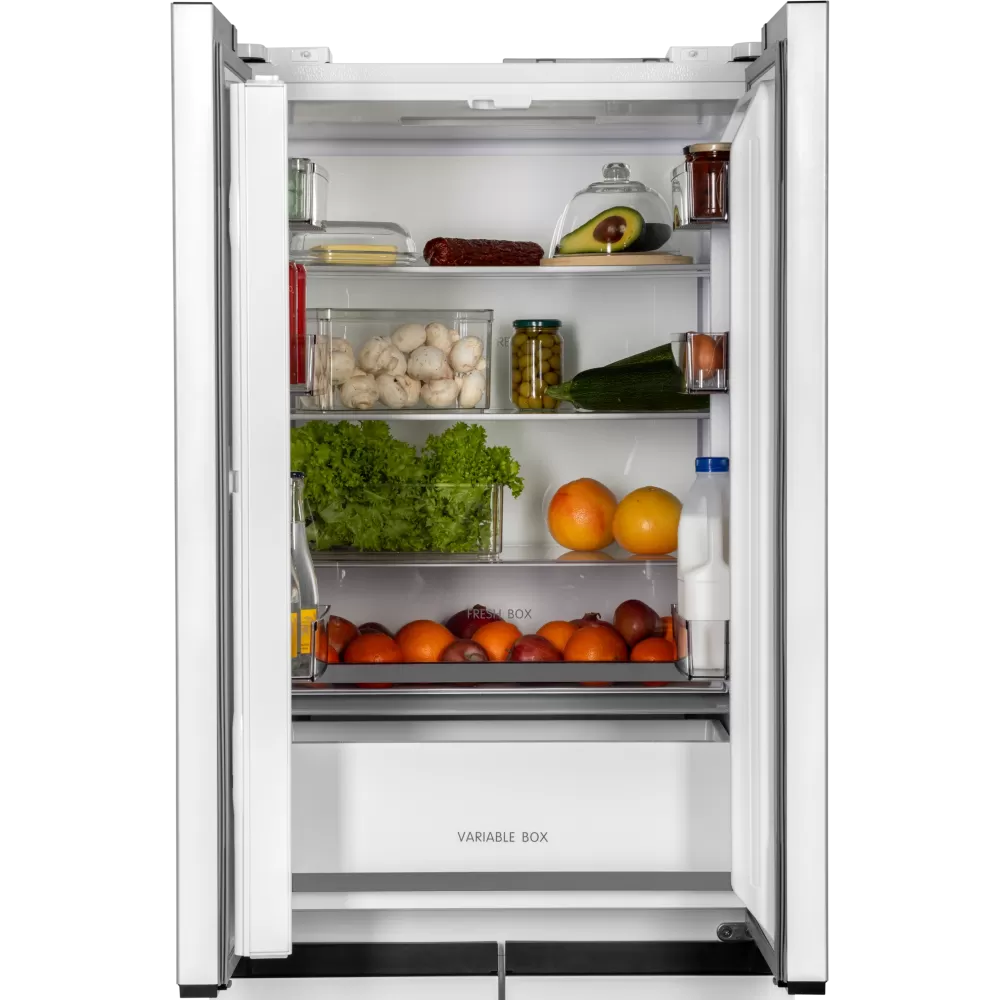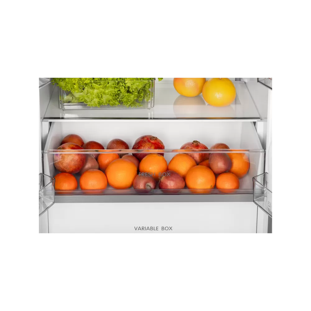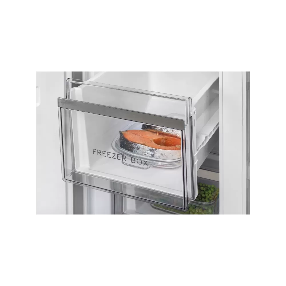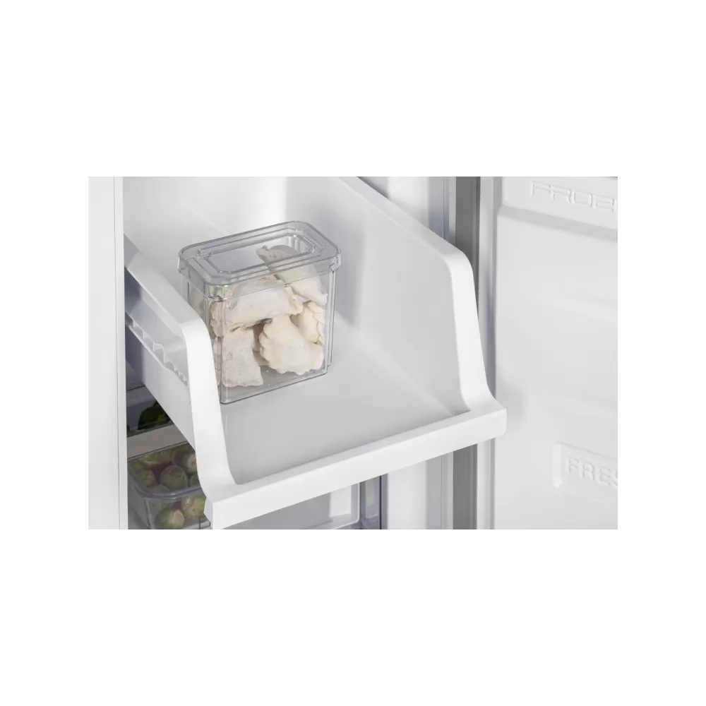 Глубина холодильника 60 см позволяет свободно встроить его в кухонный гарнитур. При этом необходимо обеспечить всего 6 мм минимального расстояния от техники до кухонных шкафов. В модели предусмотрена система нижнего отвода тепла, за счет которой стенки соседних шкафов не будут нагреваться. Благодаря обновленной дверной конструкции и специальным петлям двери холодильника открываются на 90 градусов, обеспечивая удобный доступ к продуктам.