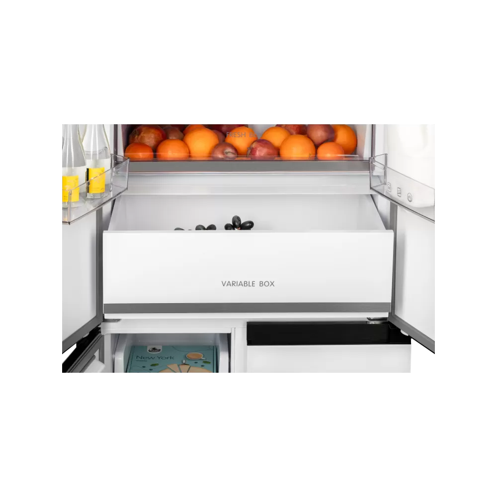 Также в модели имеется ящик с индивидуальной зоной охлаждения, в котором можно установить свою необходимую температуру — 0 °С или -3°С (при общей температуре холодильного отделения от 2 до 9 °С ).