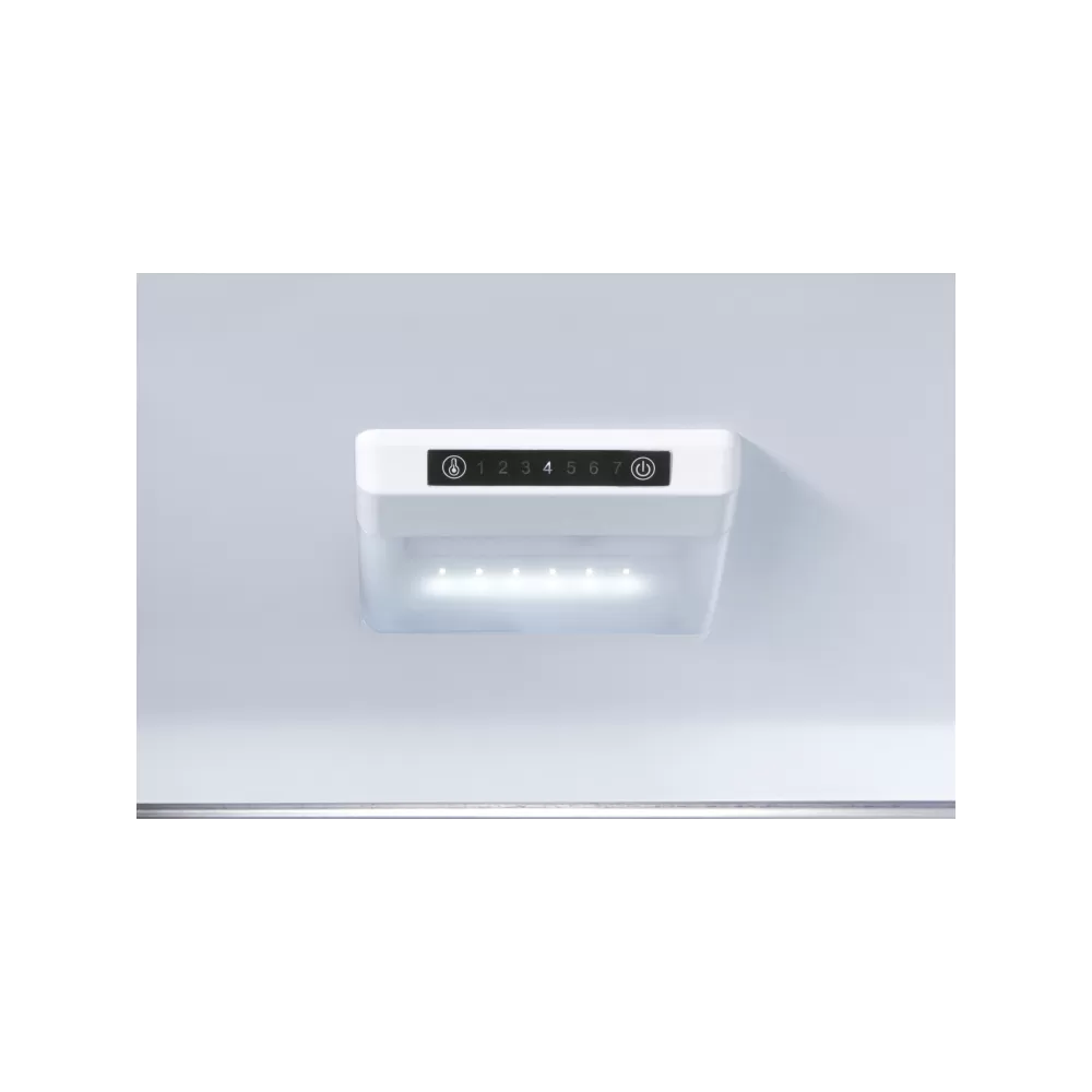 Электронная панель управления, расположенная внутри холодильной камеры, делает холодильник интуитивно понятным в управлении. Кнопкой регулятора температуры можно выбрать необходимую температуру работы холодильника, где индикатор 1 – самая теплая температура, а индикатор 7 – самая холодная.