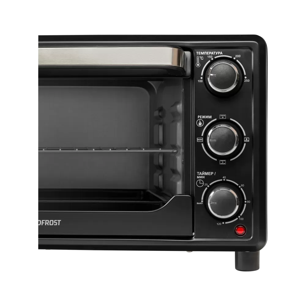 За счет встроенной подсветки удобно наблюдать за процессом приготовления через стеклянную прозрачную дверцу мини-печи, не открывая ее.