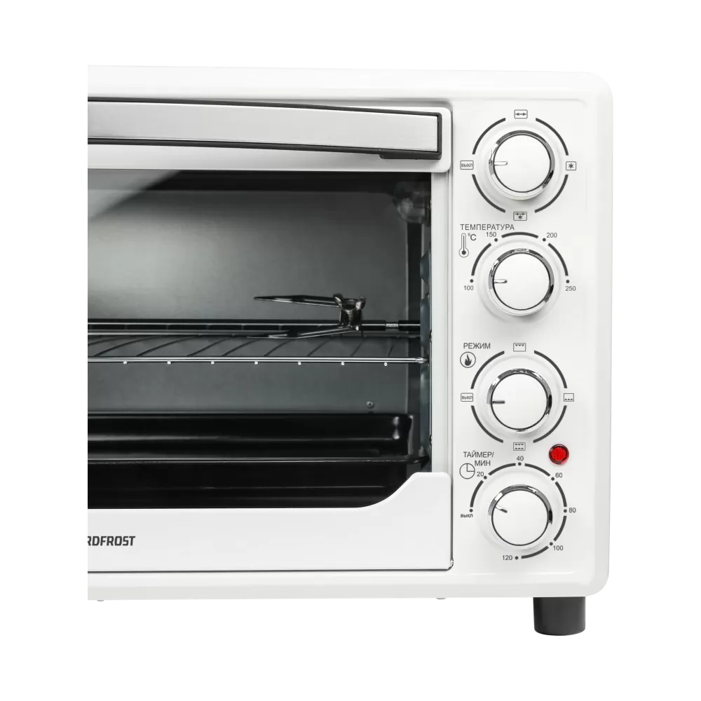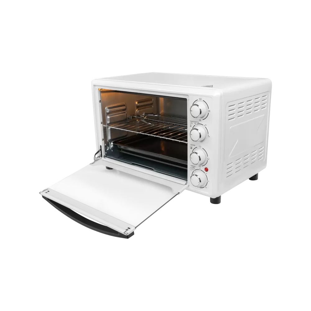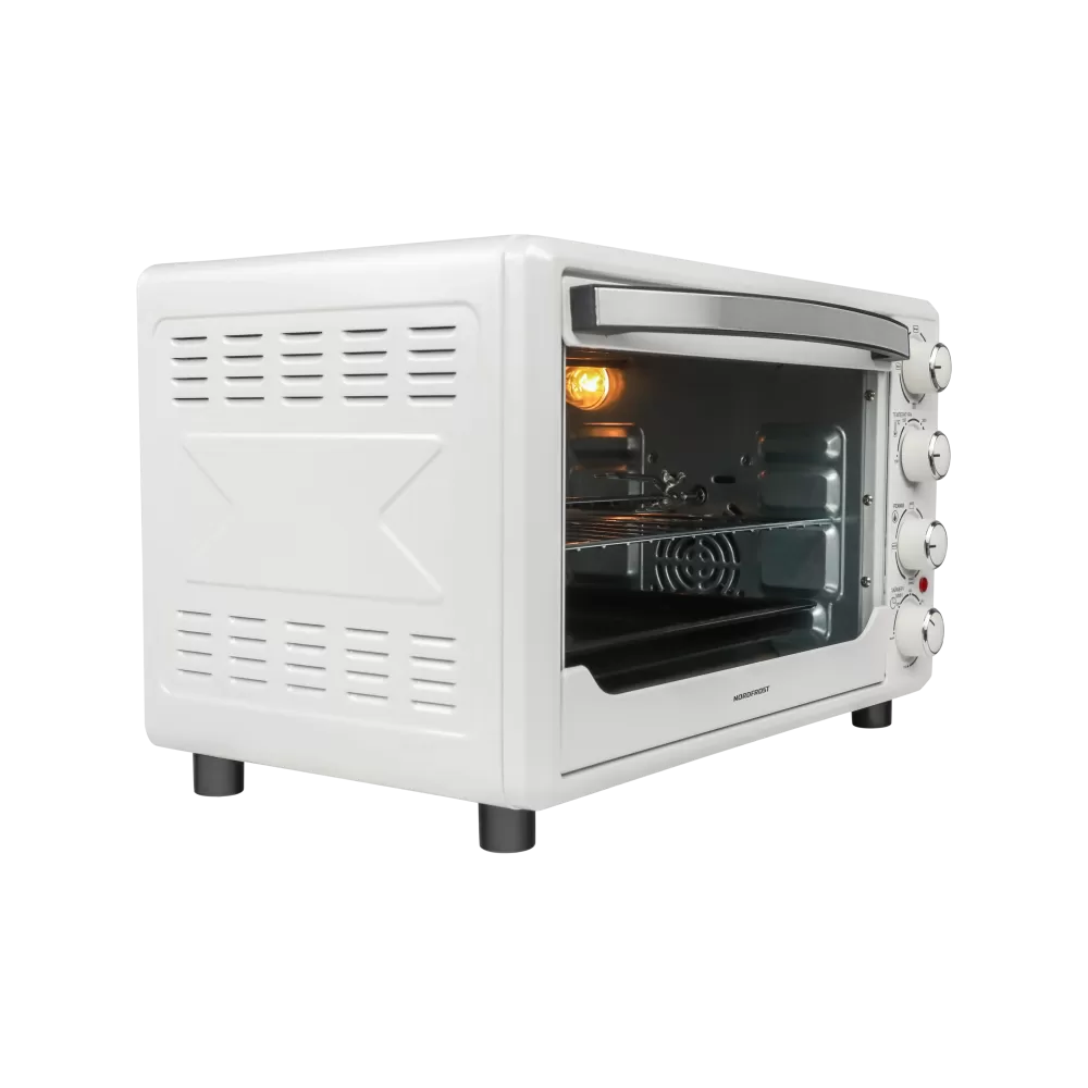За счет встроенной подсветки удобно наблюдать за процессом приготовления через стеклянную прозрачную дверцу мини-печи, не открывая ее.
