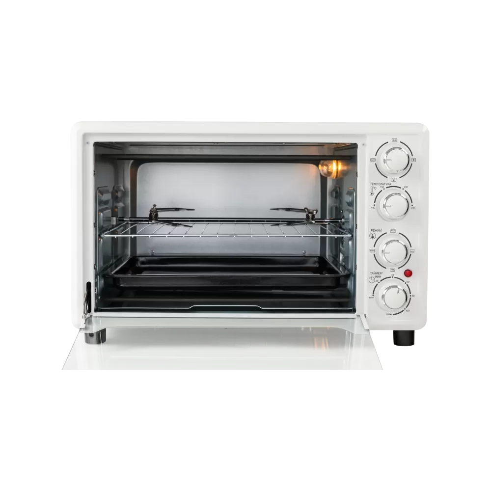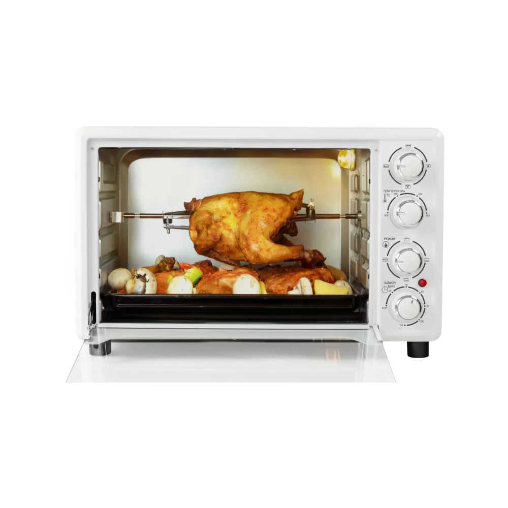 Настольная духовка имеет 6 режимов работы. Мощные нагревательные элементы расположены в верхней и нижней частях прибора.