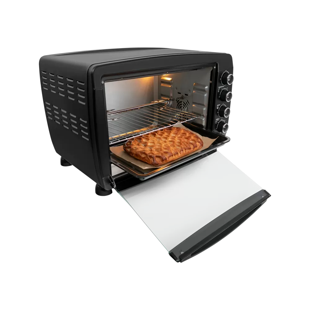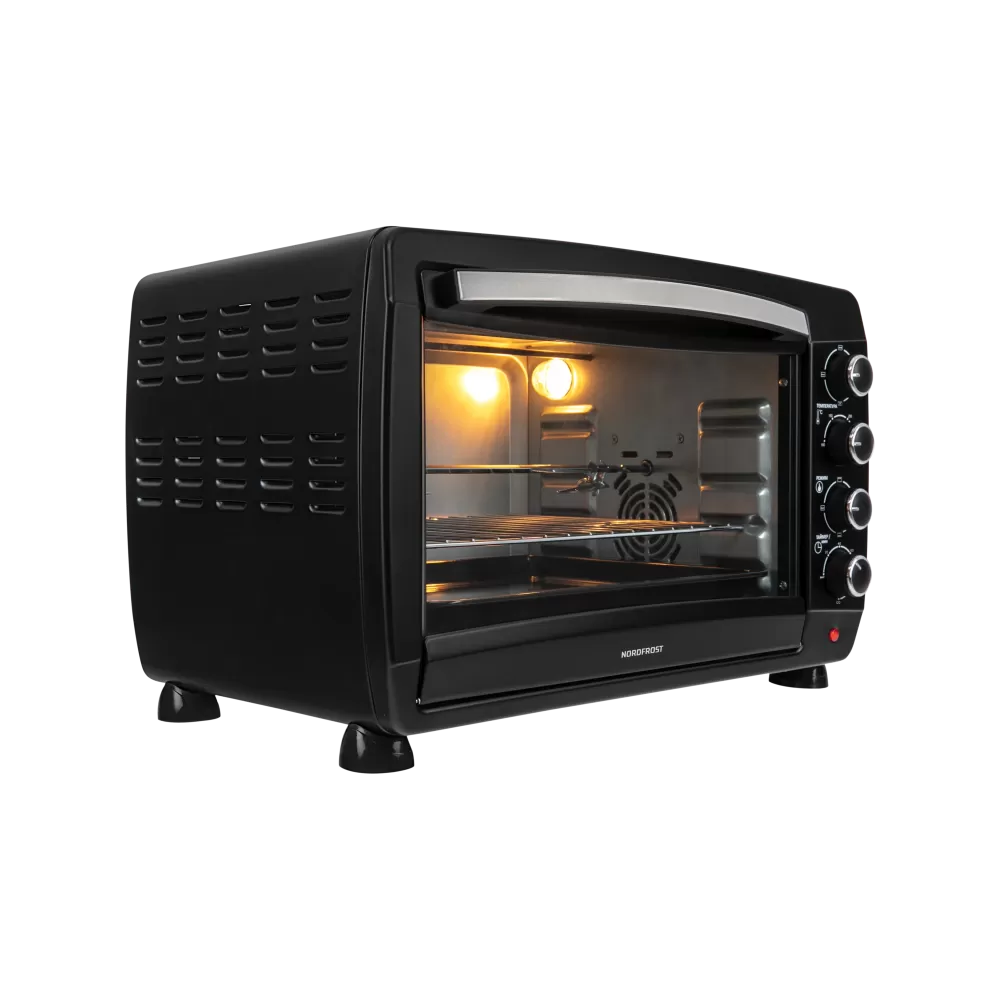 За счет встроенной подсветки удобно наблюдать за процессом приготовления через стеклянную прозрачную дверцу мини-печи, не открывая ее.