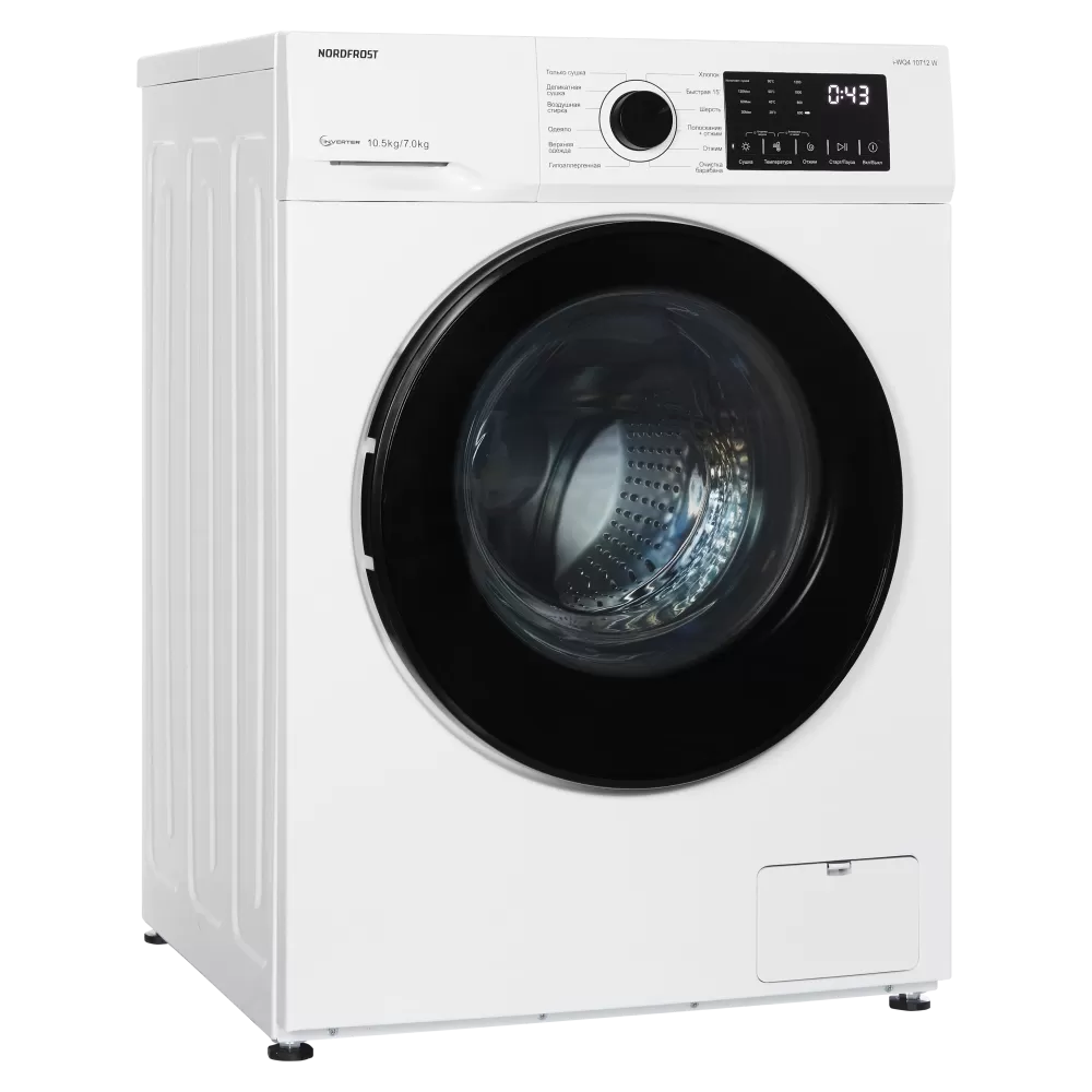 Инверторная стиральная машина NORDFROST i-WQ4 10712 W с функцией сушки имеет прекрасный показатель загрузки белья до 10,5 кг при стирке и до 7 кг при сушке. Инверторный мотор работает тише стандартного, отличается долговечностью и ресурсосбережением, что подтверждено высшим классом энергоэффективности А+++. Машинка потребляет до 64 л воды за цикл стирки с максимальной скоростью отжима 1200 оборотов в минуту.