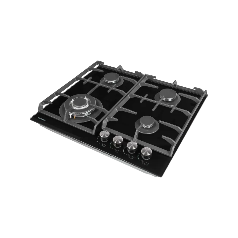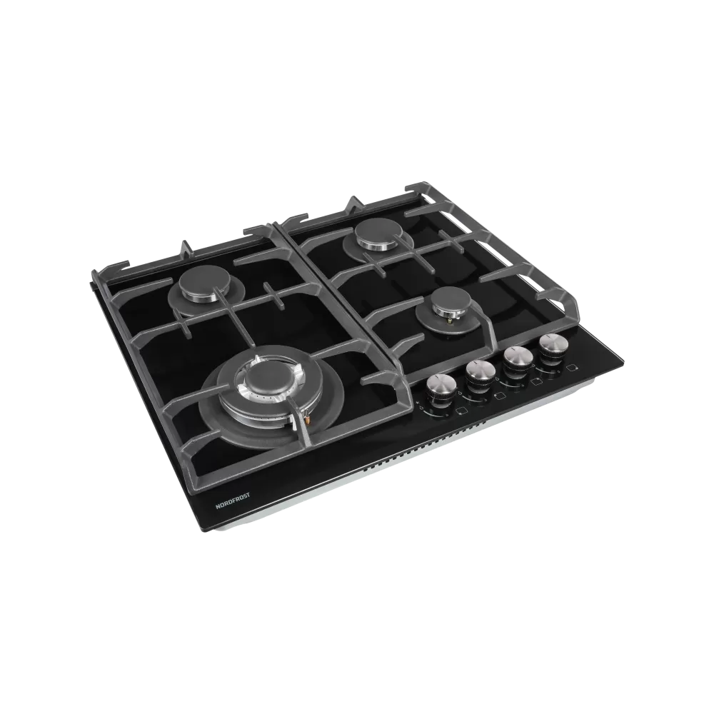 Газовая варочная поверхность NORDFROST HM 6044 B выполнена из безопасного закаленного стекла в черном цвете, оснащена 4 конфорками с газовым подключением.