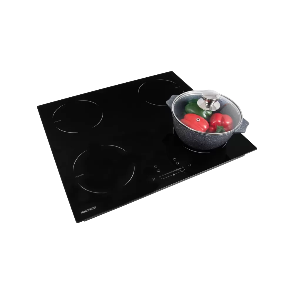 Встраиваемая индукционная варочная поверхность NORDFROST i-M 6040 B выполнена из стеклокерамики Kanger и оснащена 4 конфорками с сенсорным управлением.