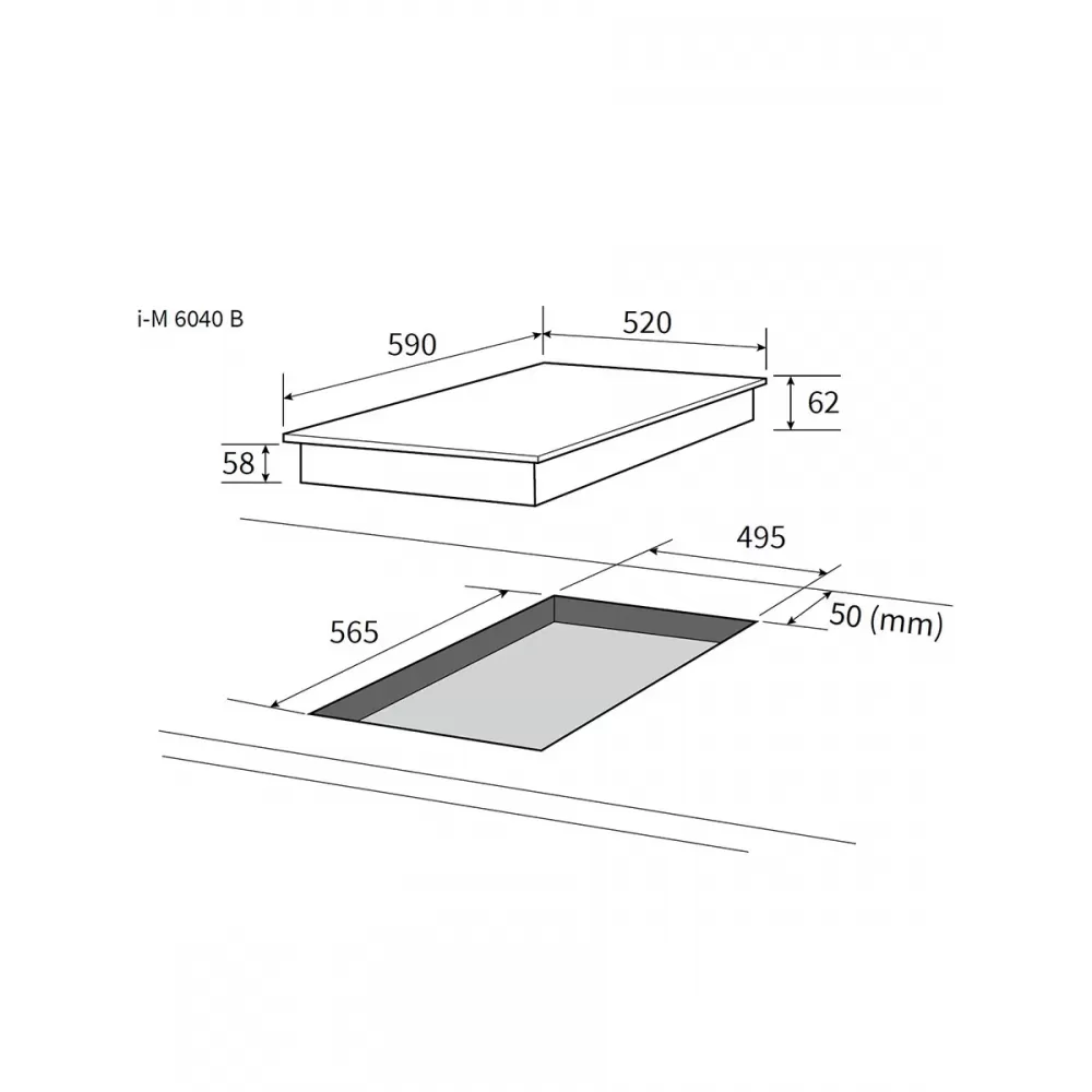 - Габариты для встраивания (Ш х Г), см 56.5 х 49.5