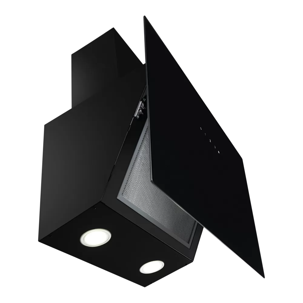 Стильная и современная вытяжка с фасадом из закаленного стекла черного цвета универсальна для любого интерьера кухни. Глянцевое стеклянное покрытие износостойкое и легкое в уходе.