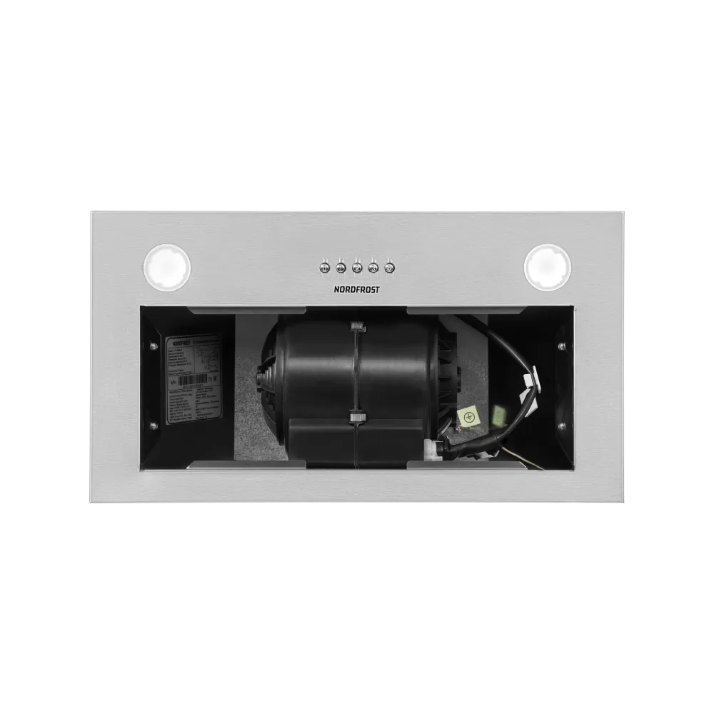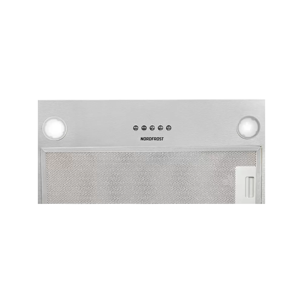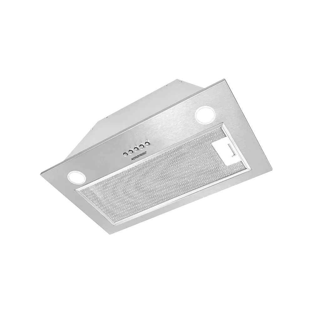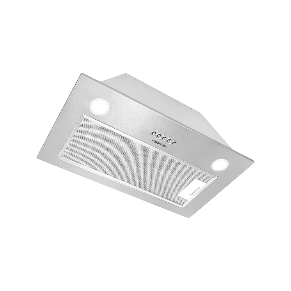Компактная встраиваемая вытяжка NORDFROST FB 6060 X с мощностью двигателя 140 Вт, в цвете «нержавеющая сталь» и лаконичном современном дизайне – прекрасное решение для тех, кто хочет сэкономить пространство и предпочитает закрытый кухонный гарнитур.