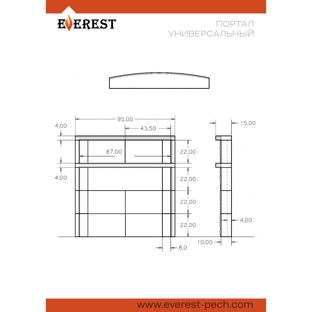 Ширина: 950 мм Высота: 960 мм Глубина: 150 мм Толщина: 40-150 мм Вес: 165 кг Материал облицовки: Натуральный камень "Пироксенит Элит"