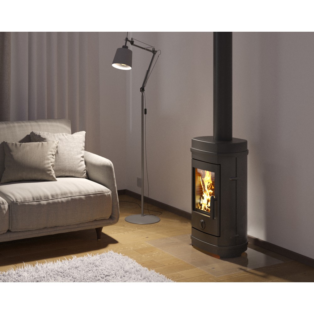 Быстрый разгон температуры воздуха до комфортной, поддержание тепла в комнате в течение нескольких часов, большая дверка, малый вес, компактность и интересная форма отличают печь-камин из европейского чугуна EVEREST F7.